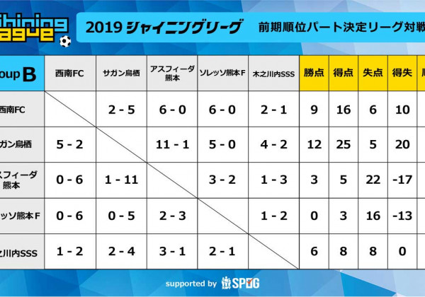 Group B:2019前期順位パート決定L:【公式】シャイニングリーグU-12