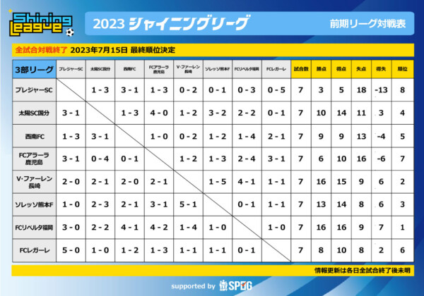 前期|3部リーグ:【公式】2023シャイニングリーグU-12