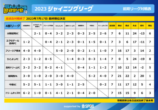 前期|4部リーグ:【公式】2023シャイニングリーグU-12
