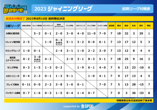 前期|2部リーグ:【公式】2023シャイニングリーグU-12