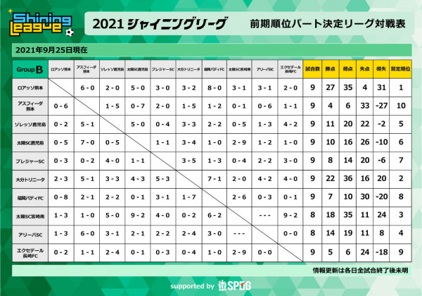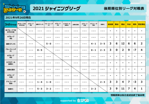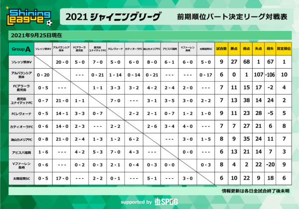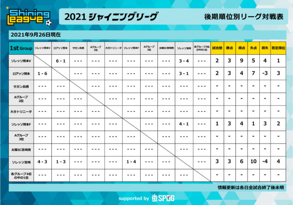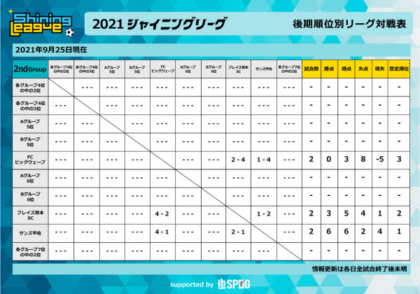 後期順位別リーグ コロナ感染症対策のため実施途中に中止となりました ※ 万全の情報提供を喫する為、大会及び出場チーム関係者以外の...