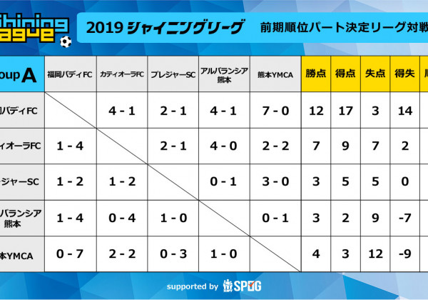 Group A:2019前期順位パート決定L:【公式】シャイニングリーグU-12